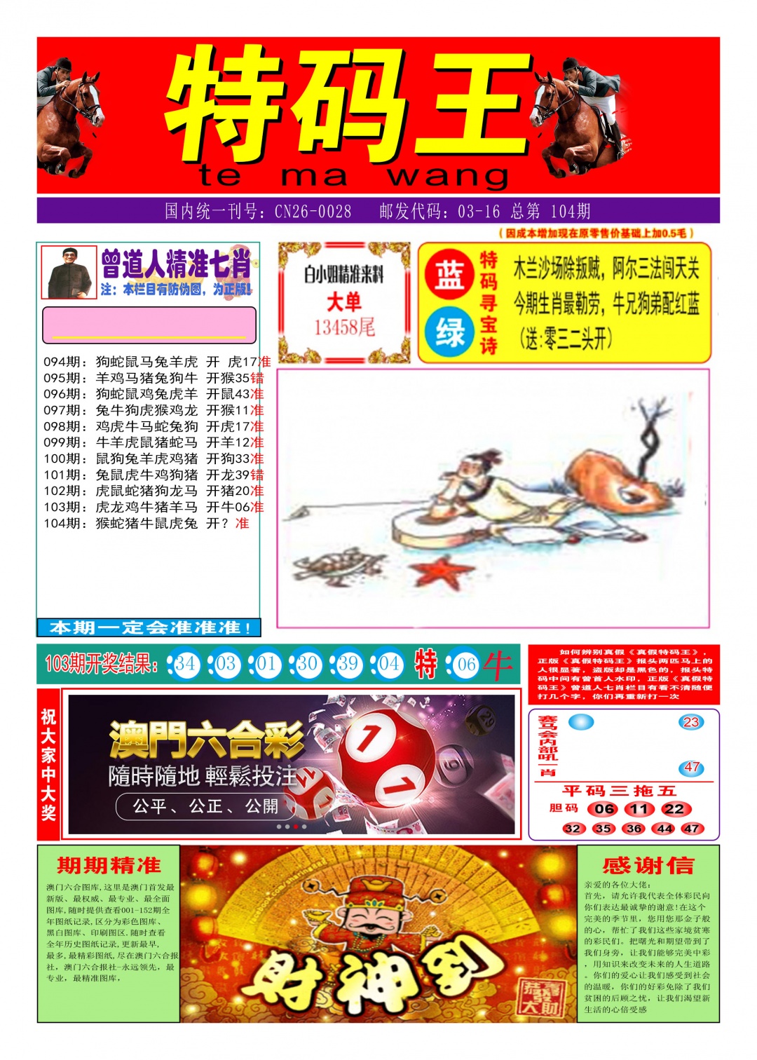 | 104期:【鼠牛蛇兔猴马鸡】开:?00准 |